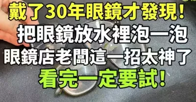 戴了30年眼鏡才發現!把眼鏡放水裡泡一泡,眼鏡店老闆這一招太神了,一定要試試!