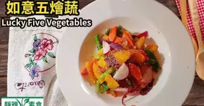 《如意五燴蔬》南瓜和紫薯可以這樣做, 顏色漂亮,美味健康,簡單易做!Lucky Five Vegetables